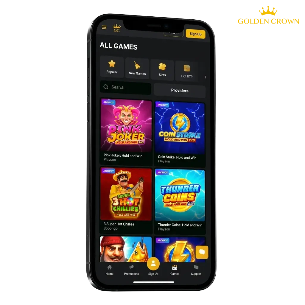 The casino section of the Golden Crown app is extensive, well-organised, and easy to navigate from any smartphone screen. All major game categories are accessible from the main menu within a single tap.